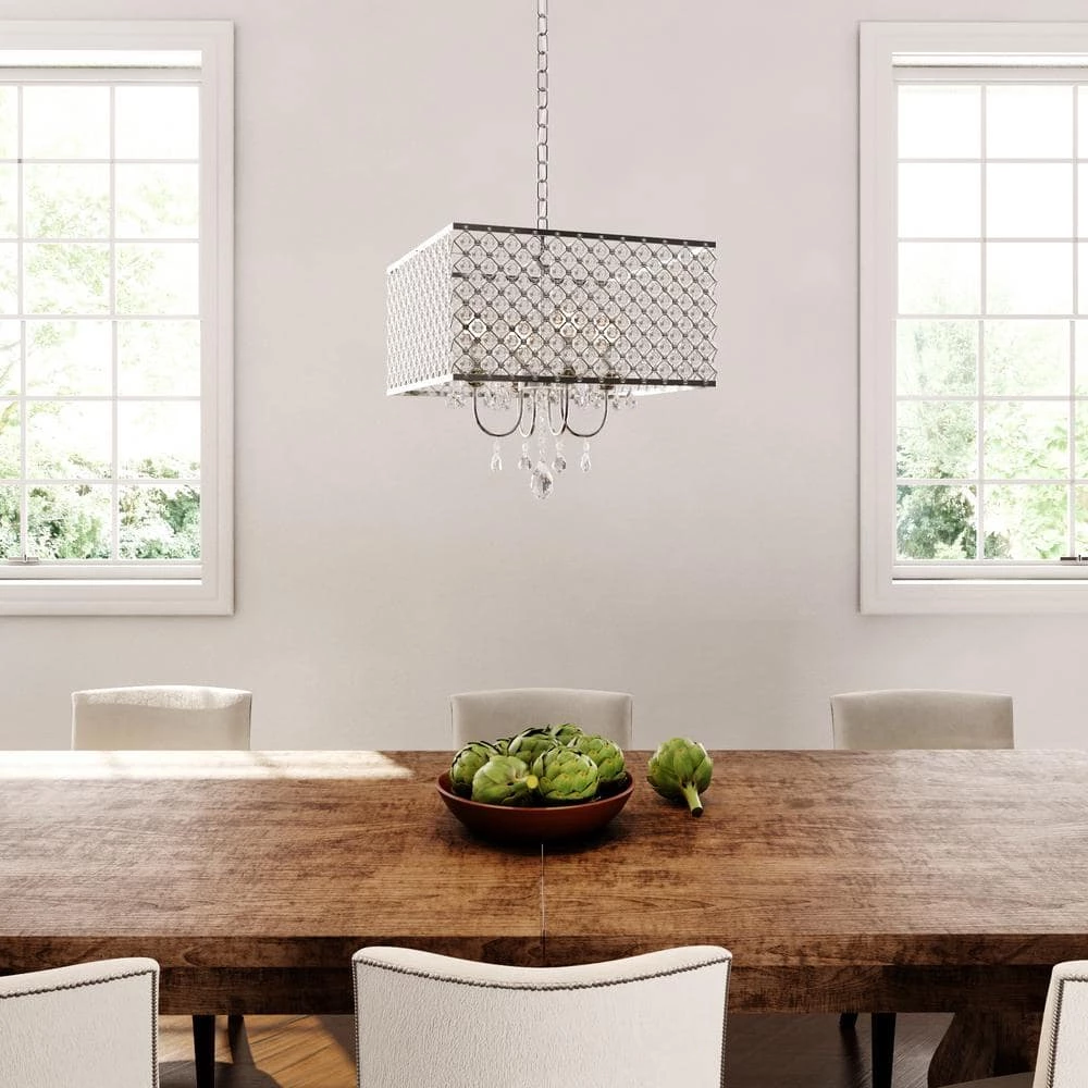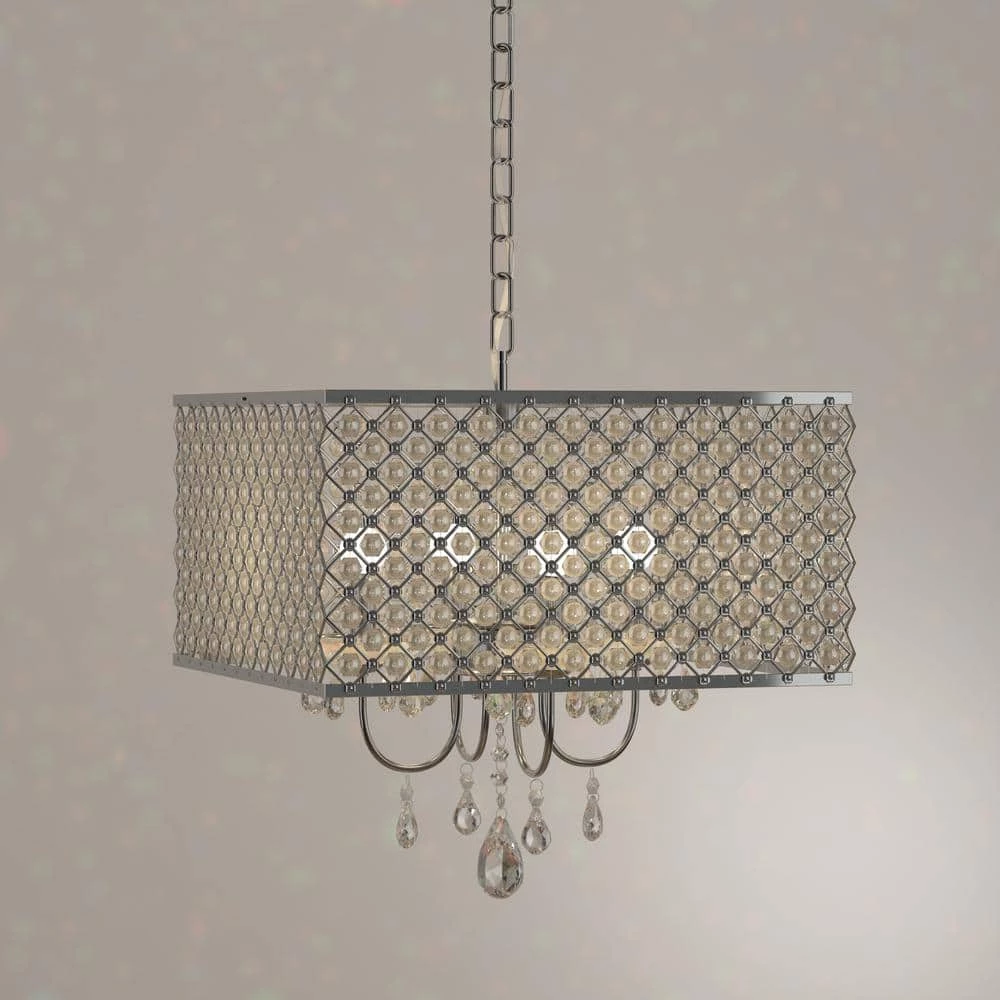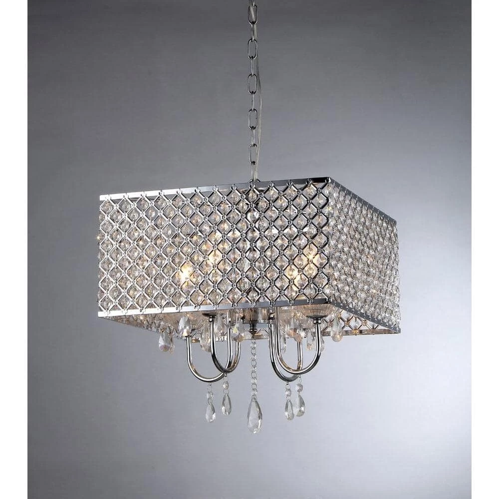 The Zarah Crystal Chandelier 16 in. Ceiling Light offers an elegant clear tone crystal cut glass and blends perfectly with silver chrome finish. The Four 40-Watt candelabra illuminate your room with warm and sophisticated lighting. Furnish your home with a magnificent innovative design of fine crystal art glass.