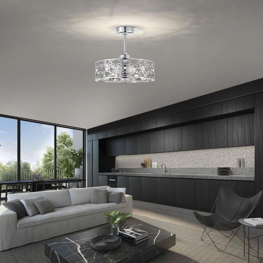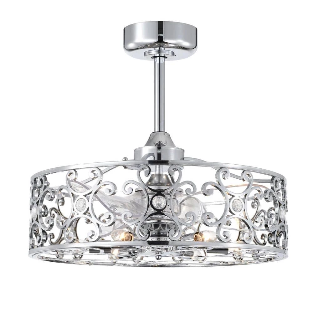 Welcome to your home a breath of fresh air with the help of our 23 in. Chrome Zuzen Ceiling Fan Chandelier. Our fixture features 6-lights, 6-fan speeds, and a lovely Chrome body with unique designs that’ll leave you in ‘awe’. Decorative during the day and decoratively functional at night, get the best of both worlds with the help of our 23-inch Zuzen Ceiling Fan Chandelier.